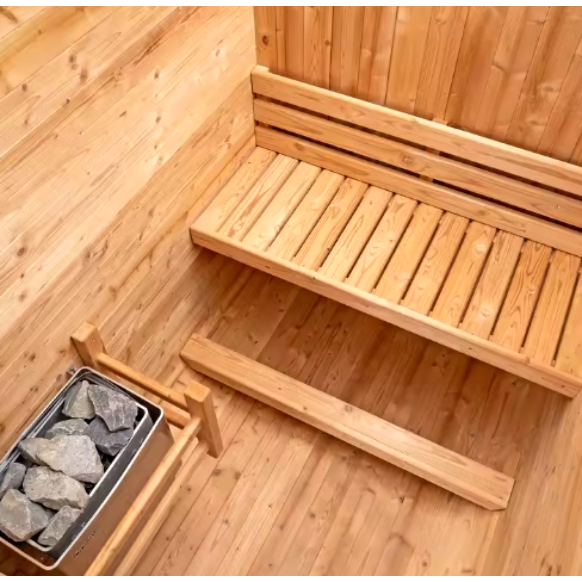 The CozyRetreat 2-Person Wood Sauna is a compact yet luxurious retreat, perfect for small spaces. Crafted from high-quality, sustainably sourced wood, this sauna creates a warm and inviting atmosphere. Its efficient heating system ensures rapid and even heat distribution, providing a spa-like experience in the comfort of your home. Ideal for couples or individuals, the CozyRetreat combines elegance, functionality, and relaxation in a compact design.