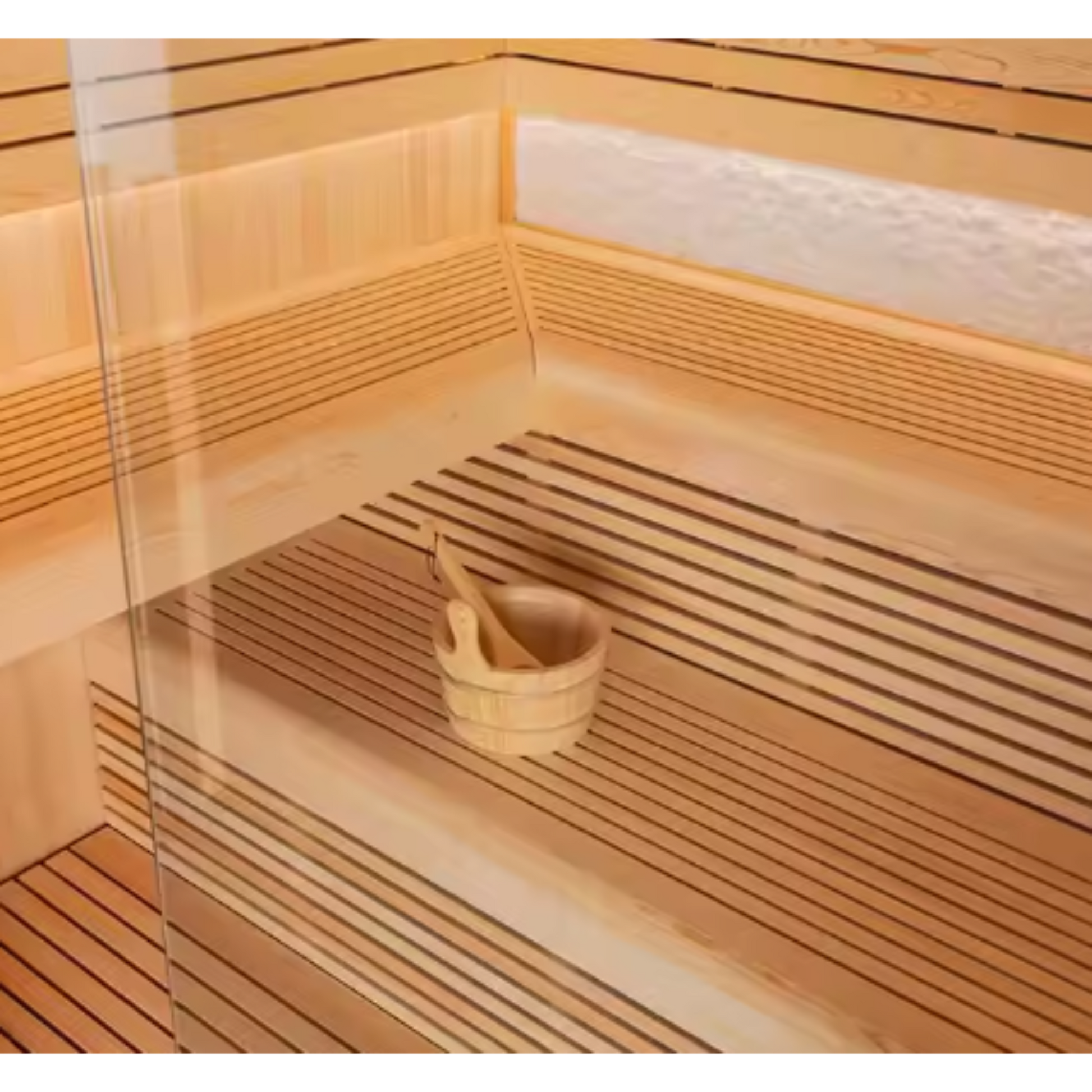 The LuxuryLodge 5-Person Wood Sauna is a spacious, high-end sauna designed for ultimate relaxation and well-being. Featuring premium wood construction, advanced heating technology, and luxurious design elements, this sauna comfortably accommodates larger groups. Its expansive interior includes ergonomic bench seating and chromotherapy lighting, creating a tranquil spa experience right at home.